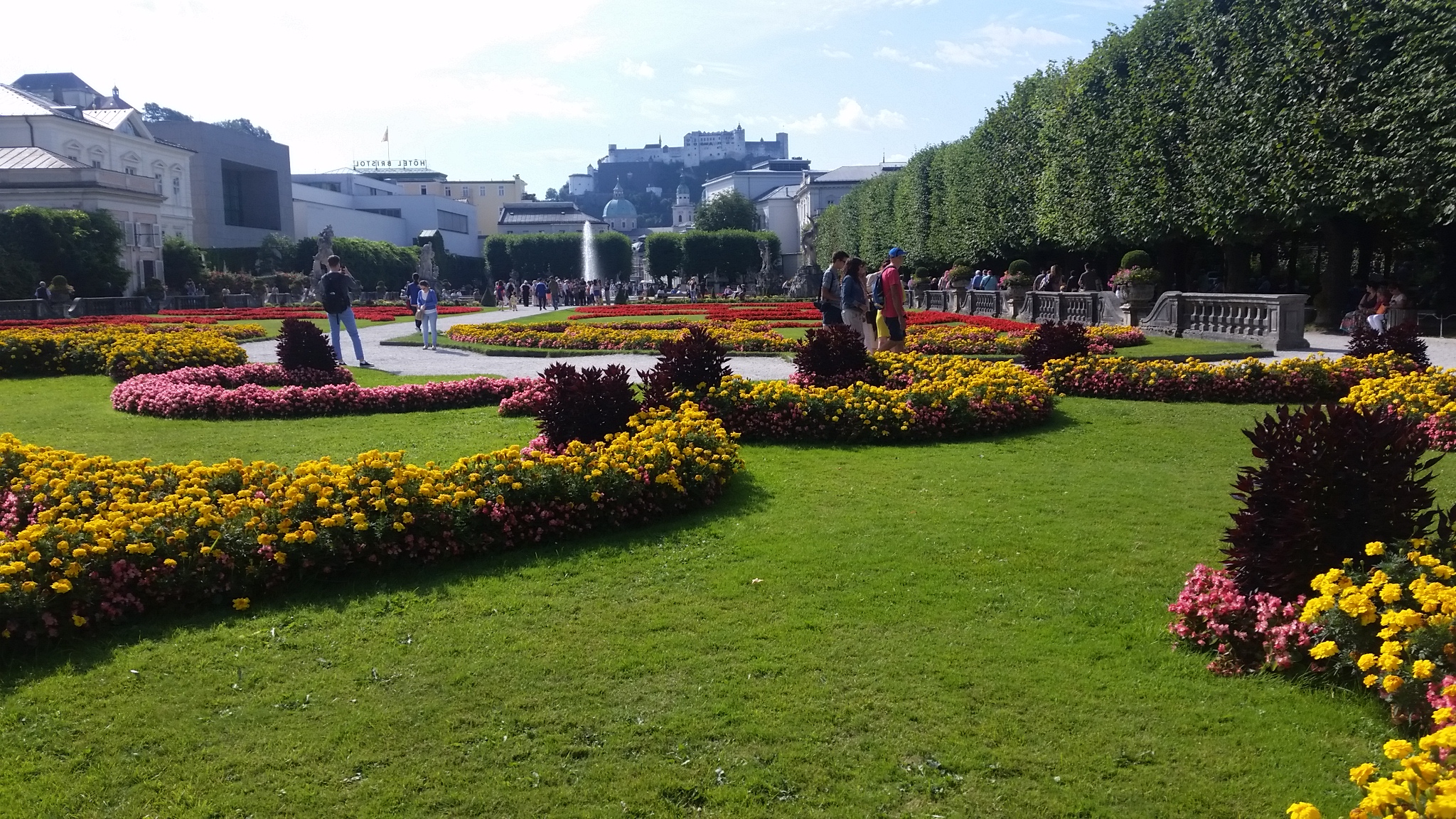 美しく造園されたお庭に ブラスバンドのパレードが オーストリアの雰囲気を
